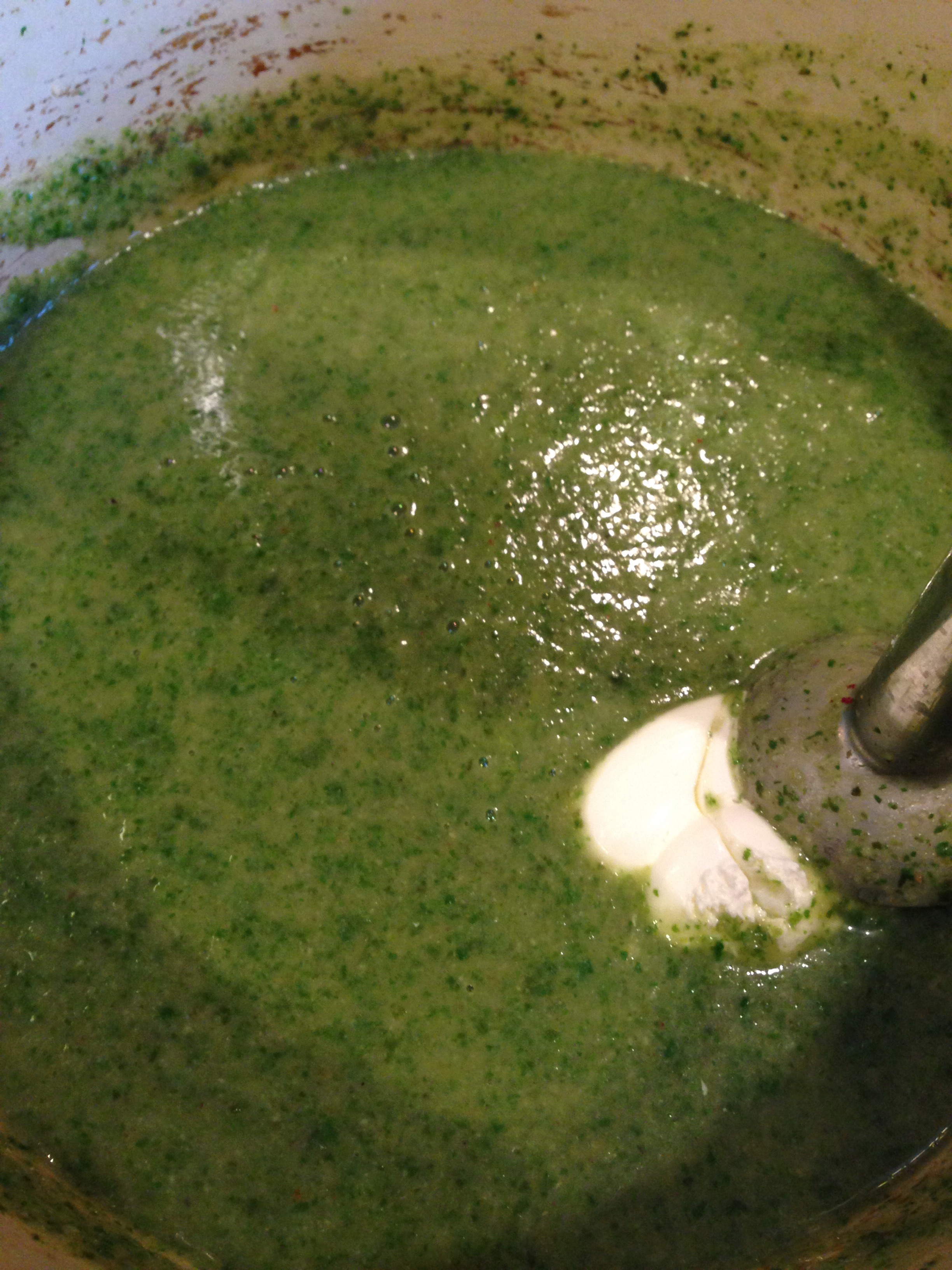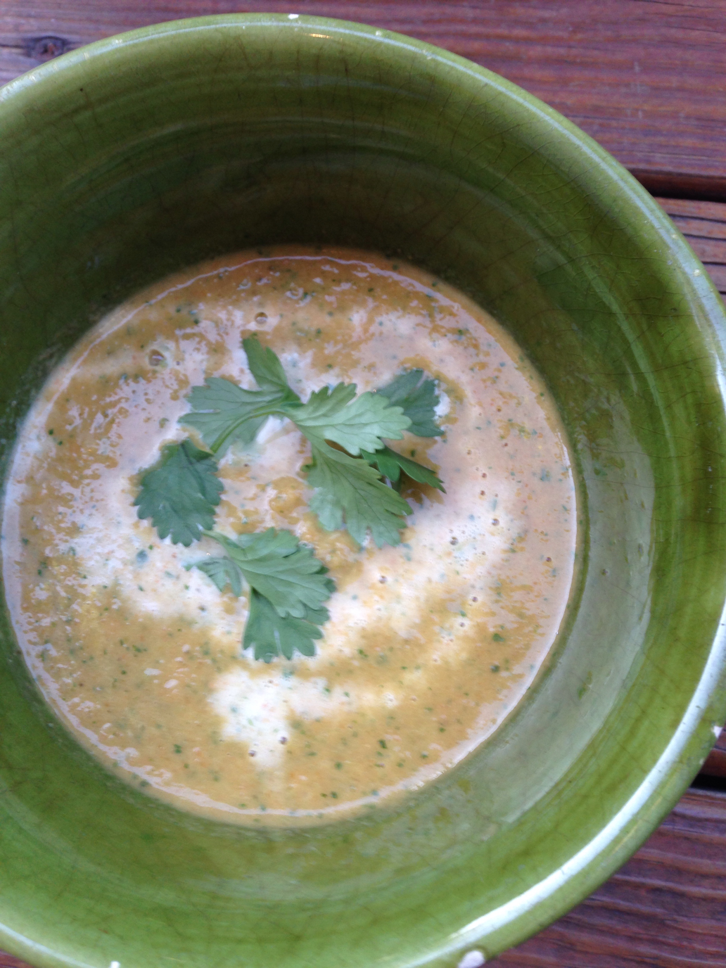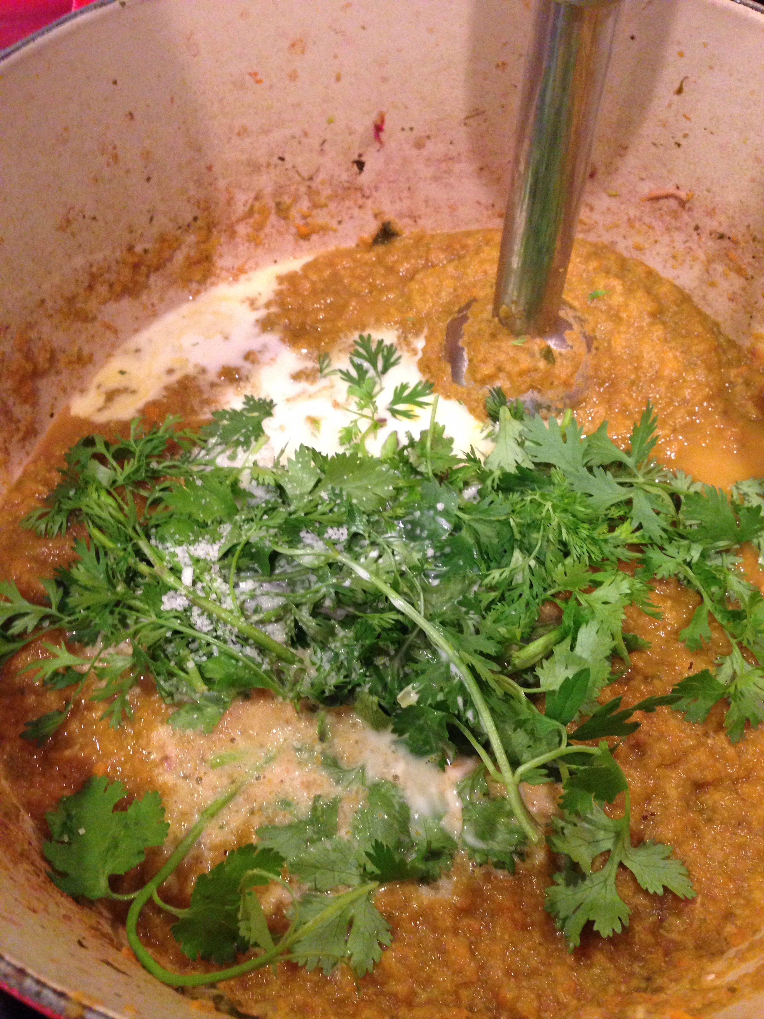 When everything was tender, I pureed it with some cilantro and coconut milk and adjusted the seasoning.