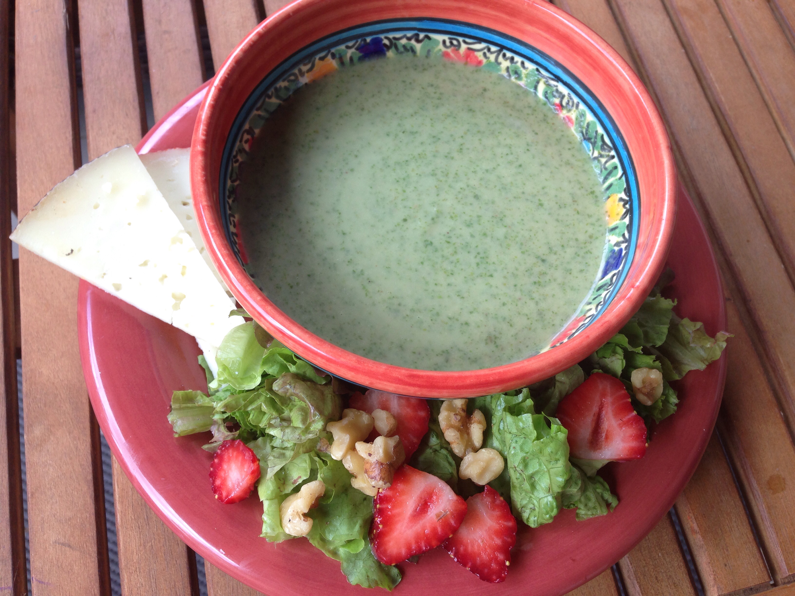 • Pureed lettuce and cauliflower soup* with strawberry and green salad*