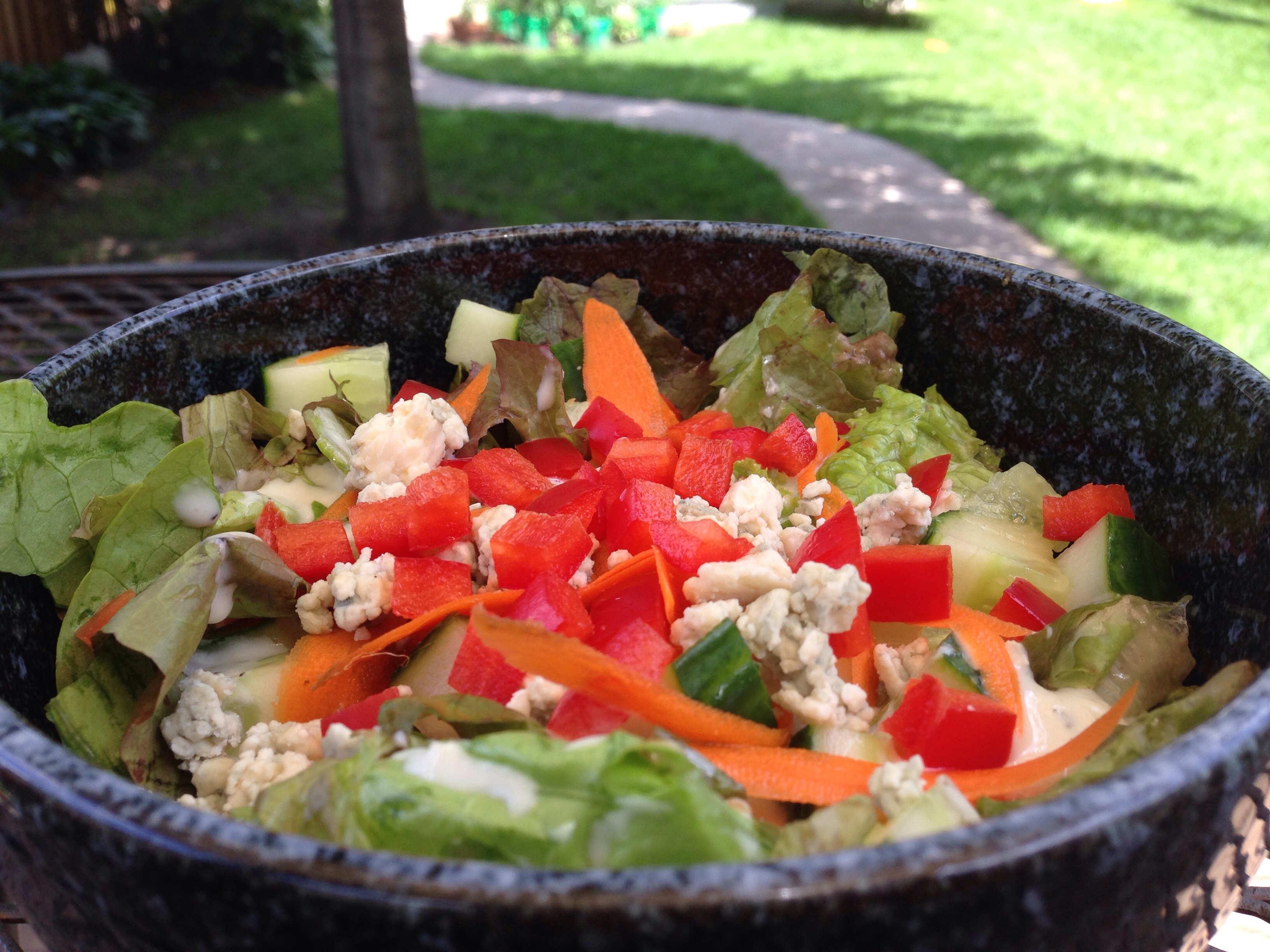 My lunch on Thursday was a simple salad with greens from the CSA box: