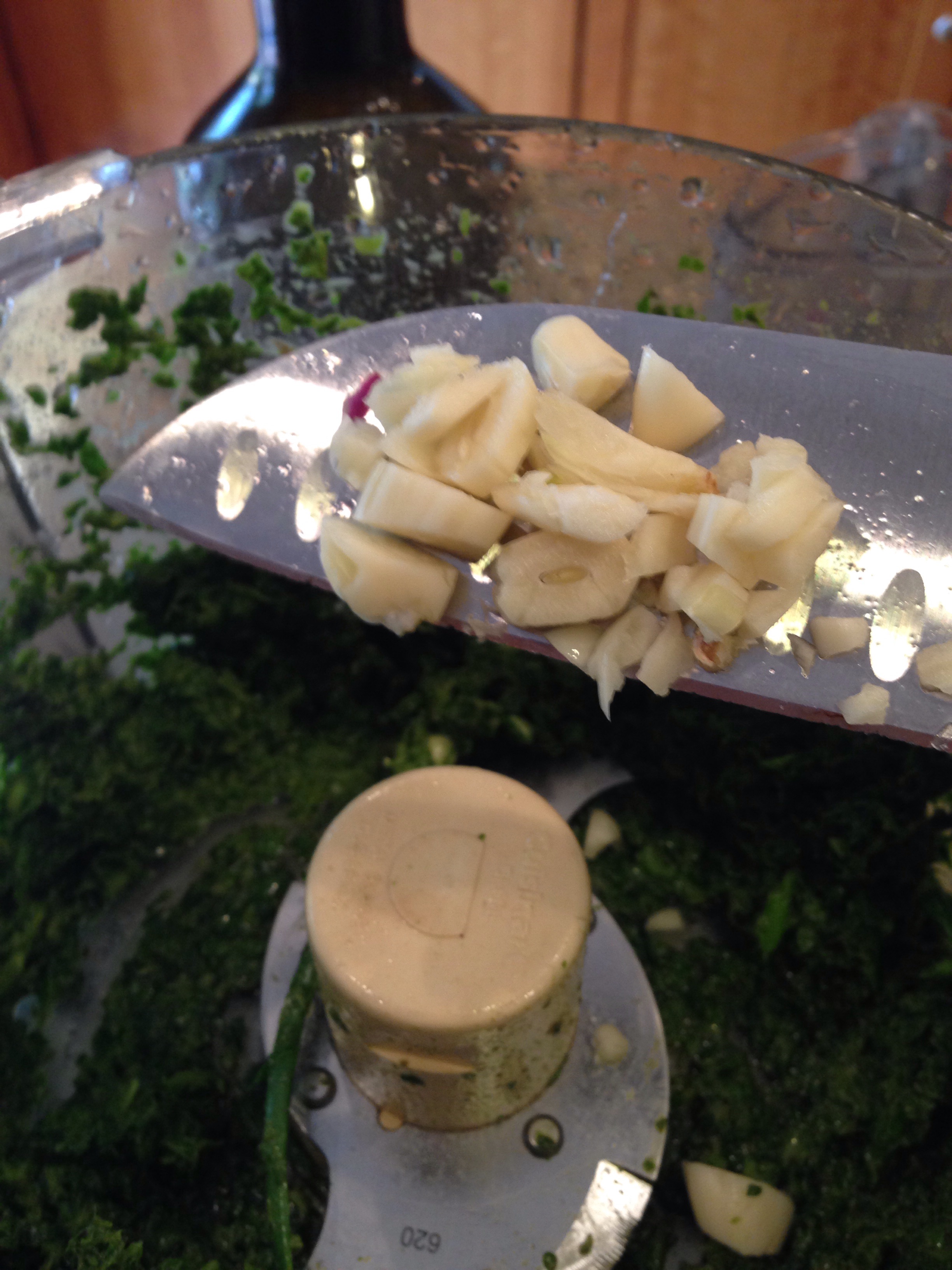 Although the scapes are mildly garlicky, I decided it needed a few garlic cloves.