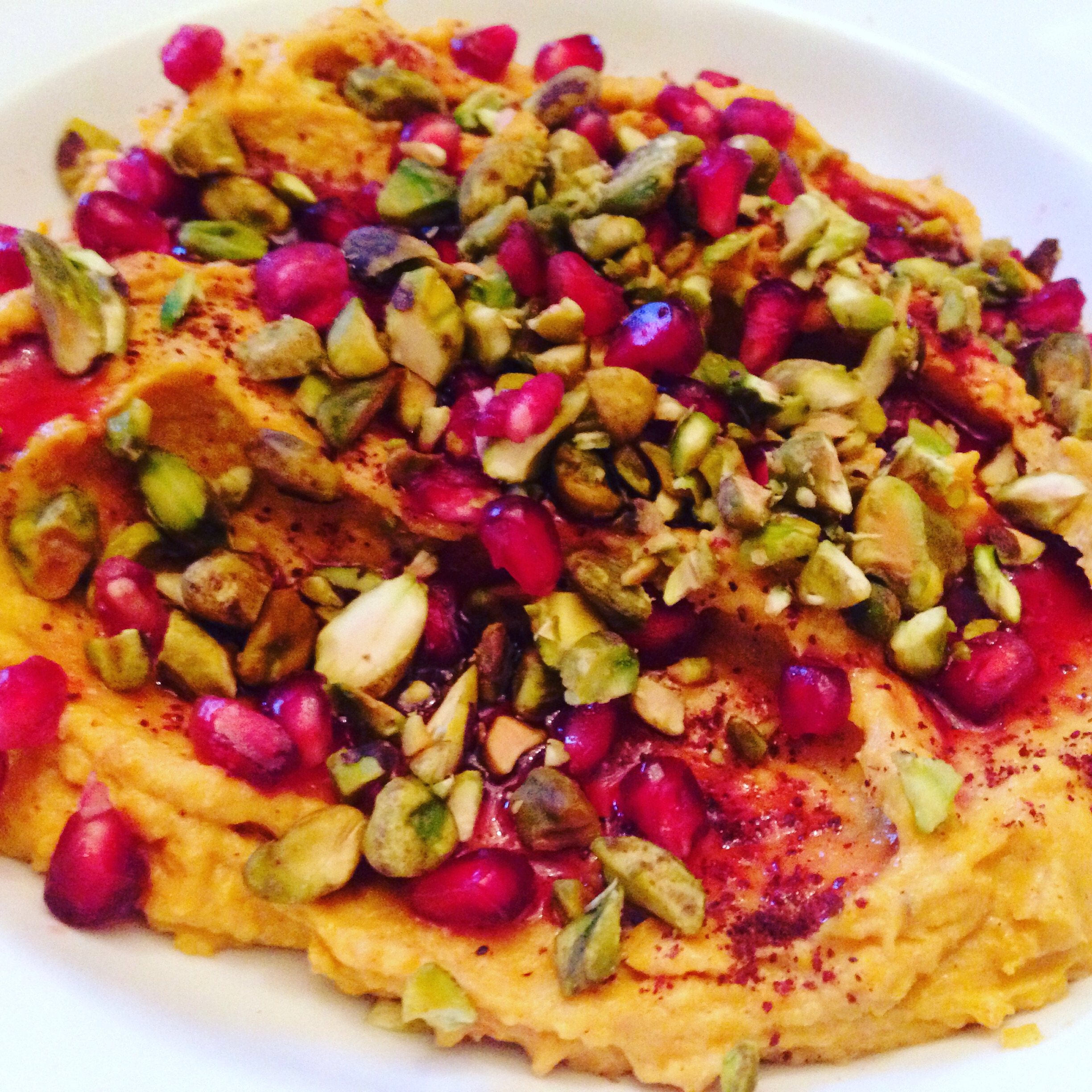 Savory Pumpkin Hummus with Pistachios and Pomegranate